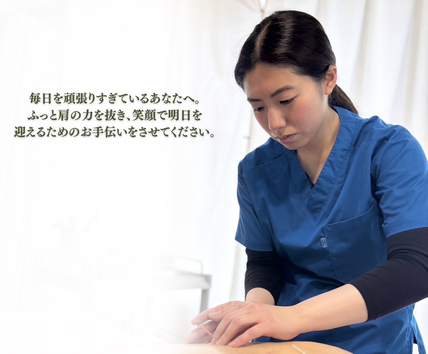 痛みや不調のある場所だけでなく、東洋医学の観点から全身のバランス(自律神経や血流)を丁寧に整え、「言葉にできない不調」を根本からケアします。