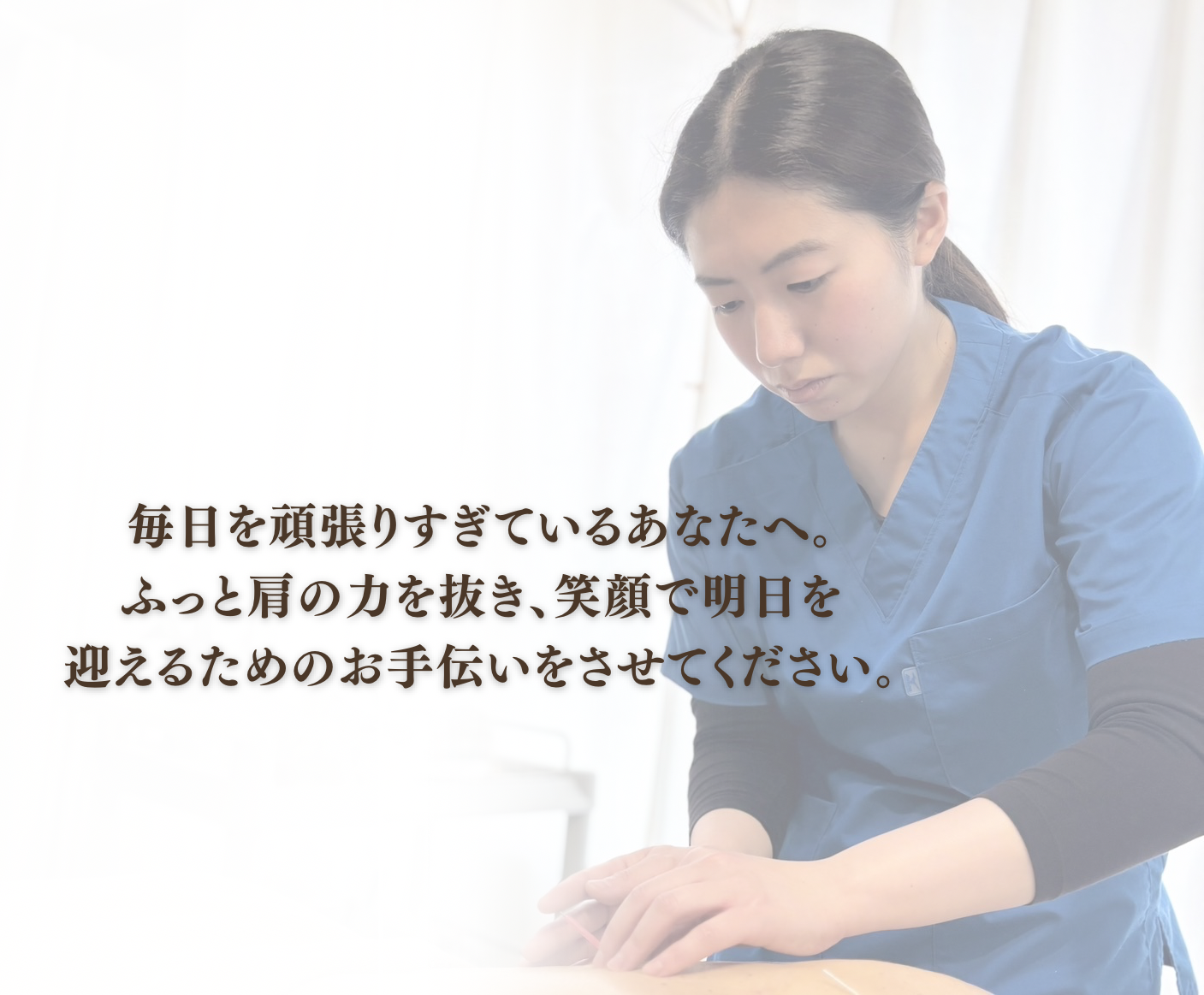 性別や年齢を問わず、頑張りすぎている皆様がふっと肩の力を抜いて、笑顔で明日を迎えられるよう、精一杯サポートさせていただきます。