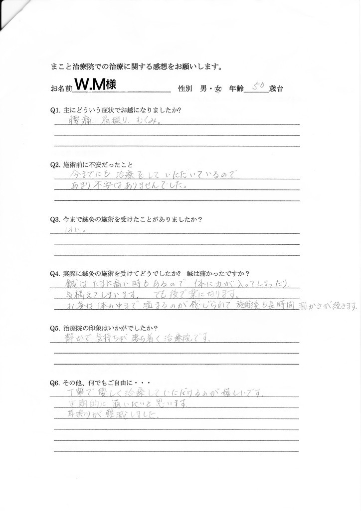 A. はい、もちろん男性の患者様もご予約いただけます。当院は性別や年齢を問わず、お身体の痛みや不調に悩むすべての方をサポートしております。慢性的な腰痛や肩こり、お仕事の疲れなど、遠慮なくご相談ください。